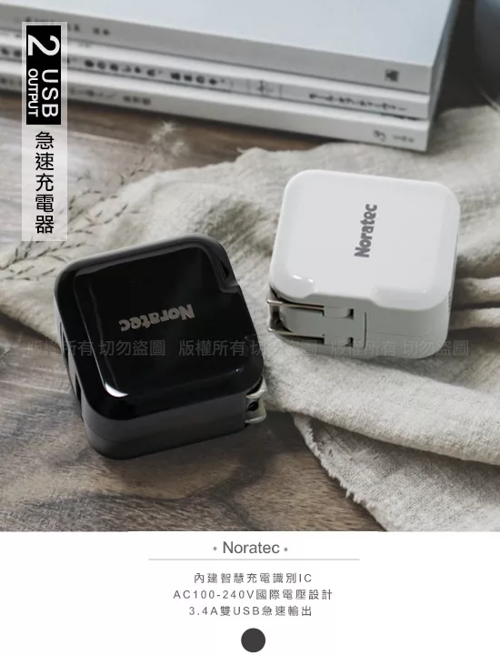 Noratec 諾拉特3 4a雙usb大電流急速充電器旅充頭 黑 Iphone Ipad Lightning線 黑 100cm Apple充電 組合 U Udn買東西購物中心